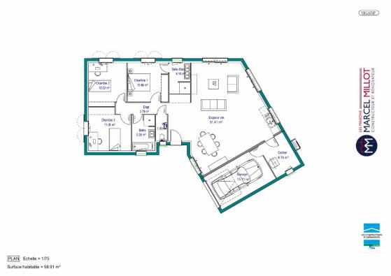 Decouvrez notre catalogue de modeles et plans de maisons individuelles rt2012 maison plainpied de 74m2 3 chambres 1 salle de bain avec garage. Demandez 3 devis a des architectes pres de chez vous. Photos similaires a plan maison 100m2 3 chambres. Plan maison feng shui.